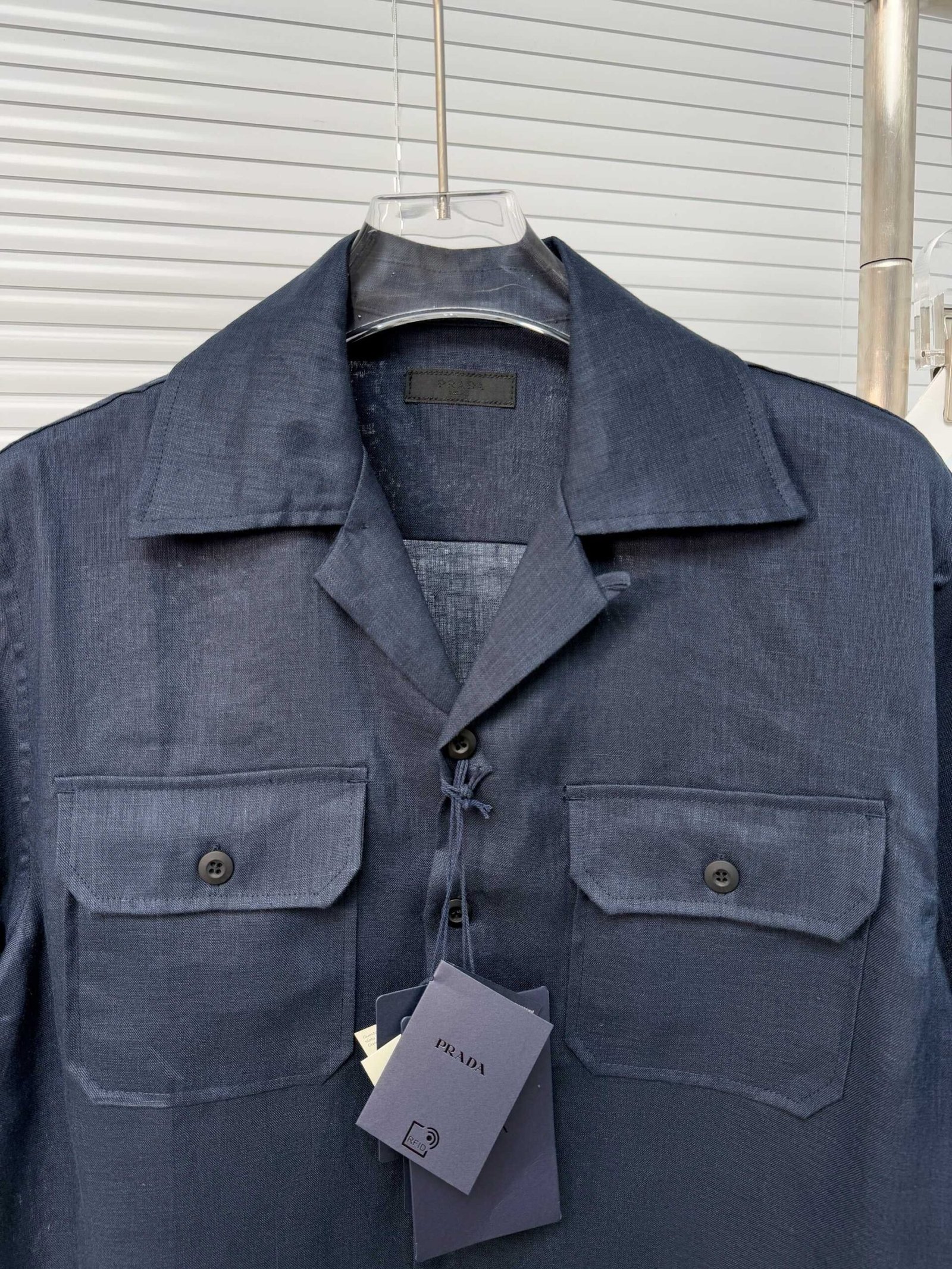 This Prada Dark Blue Jacket is the perfect blend of style and comfort. With its rich dark blue color and impeccable design. it will elevate any outfit. Perfect for any occasion. let this jacket be your go-to choice for both fashion and functionality.